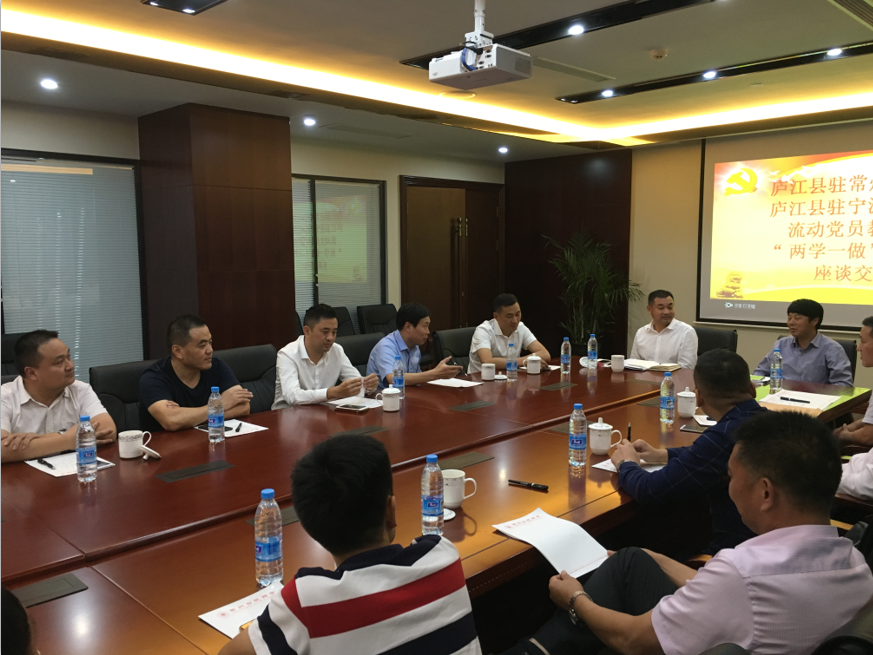 中共庐江县驻常州流动党委与中共庐江县驻宁波流动党委在桔子水晶酒店召开流动党员管理暨“两学一做”学习教育交流会,会上,庐江县驻常州流动党委和庐江县驻宁波流动党委分别就流动党员管理和“两学一做”学习教育开展情况做了交流,会场气氛热烈,大家踊跃发言。