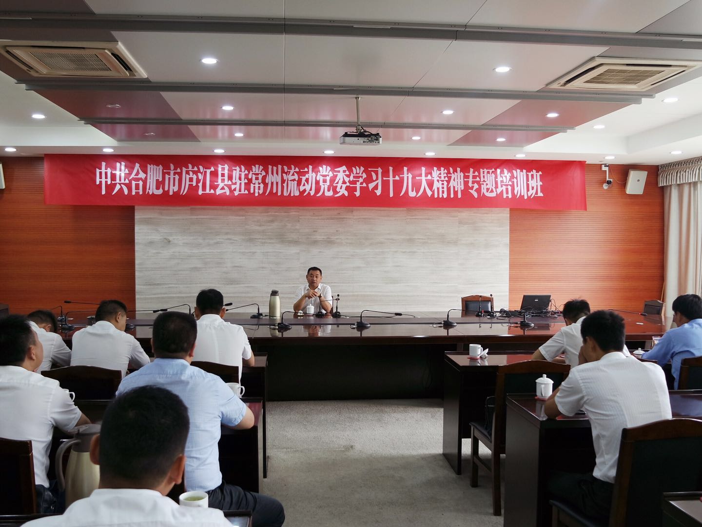 2018年6月5日,中共庐江县驻常州流动党委组织商会党员及党员干部,在常州市委党校参加“学习十九大精神专题培训班”,并邀请了中共江阴市委党校高级讲师张启伟作“迈向新时代的伟大宣言——学习宣传贯彻党的十九大精神”的专题报告。