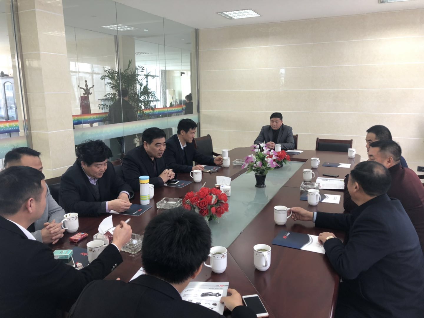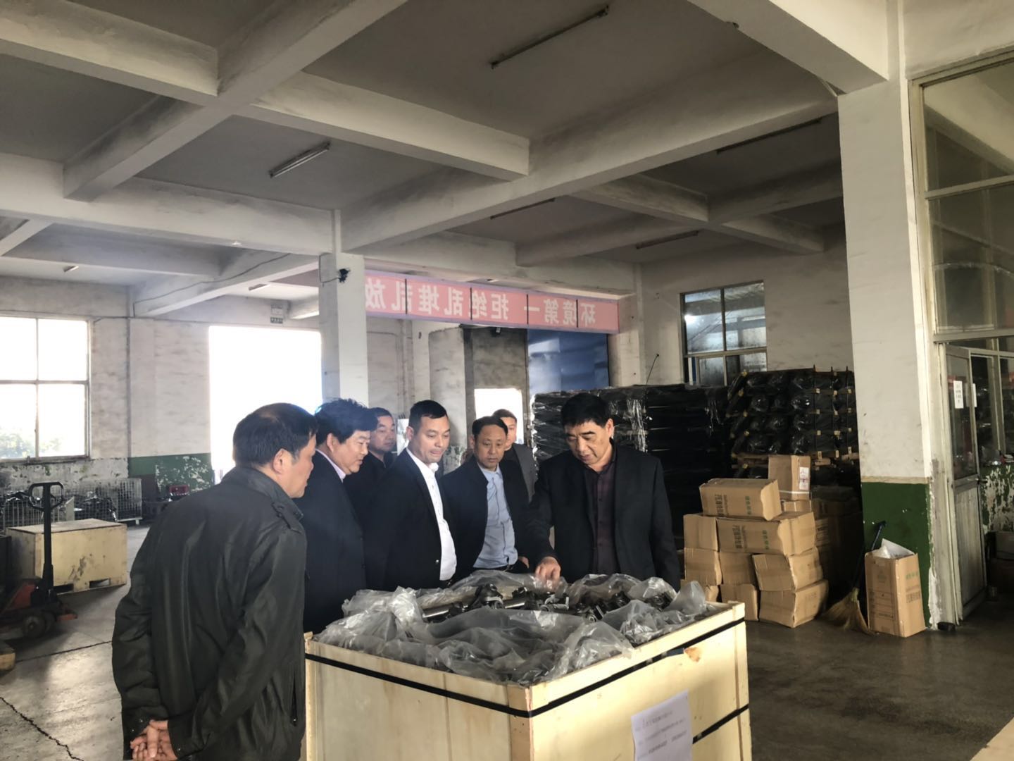 首先,考察团一行前往我商会副会长单位江苏方瑞机械有限公司进行考察,董事长殷方义热情接待了考察团一行。在考察期间,殷董事长带领考察团一行参观了工厂生产车间、仓库及生产流程和加工技术,并向考察团领导对企业目前发展规模、前景和下一步规划进行了详细的讲解,考察团对企业有了更加全面和深入的了解。参观结束后,汪主席一行对企业在行业的发展赞不绝口,鼓励其在有利于企业发展的情况下,回乡扩大生产。
