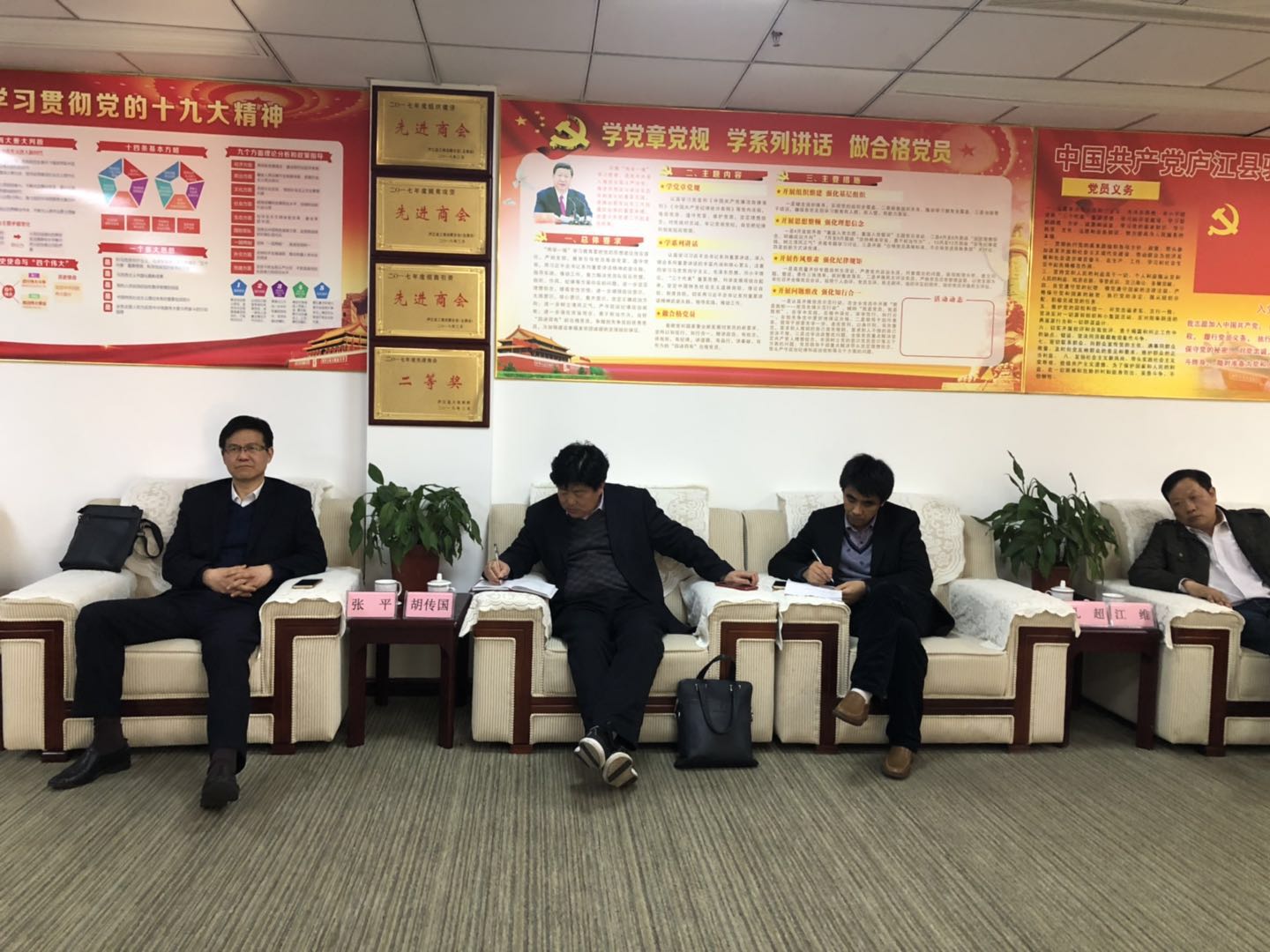 3月25日下午,合肥庐江县政协党组书记、主席汪庆才,县政协党组副书记、副主席张平,县政协党组成员、秘书长胡传国,县工商联副主席江维,县政协专委办副主任孔超一行来常州调研指导工作,就常州合肥、庐江商会和庐江在常企业发展情况进行实地考察。常州合肥商会执行会长、庐江县驻常州流动党委书记杨德传,商会常务副会长、党委委员方明才,商会常务副会长、党委委员魏传生,商会常务副会长张茂春,副会长兼副秘书长夏修虎,商会副会长、商会党支部书记范昌仓,商会副会长、商会党支部委员李所彬等陪同考察。