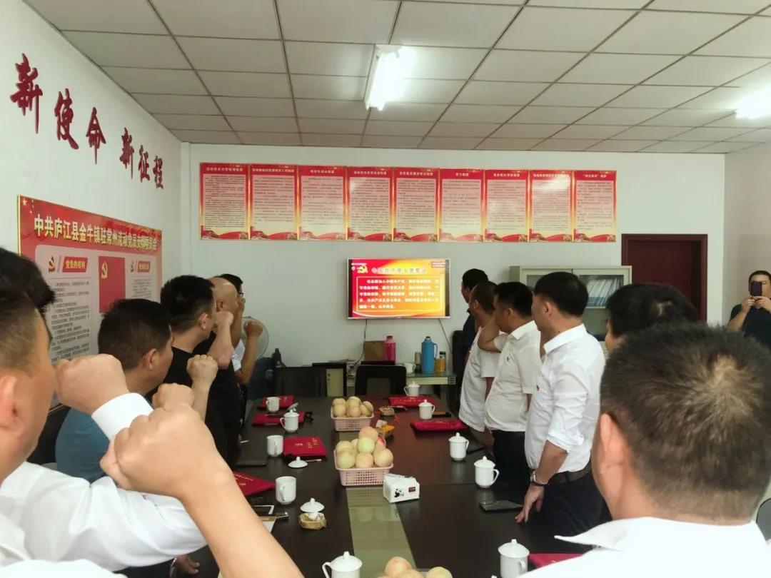 会上,全体党员在金牛镇驻常州流动党支部书记王玉华的带领下,重温了入党誓词,大家右手握拳,高举耳侧,凝视着鲜红的党旗,不忘入党初心,铭记铮铮誓言。